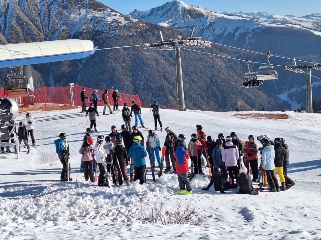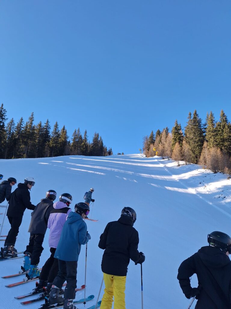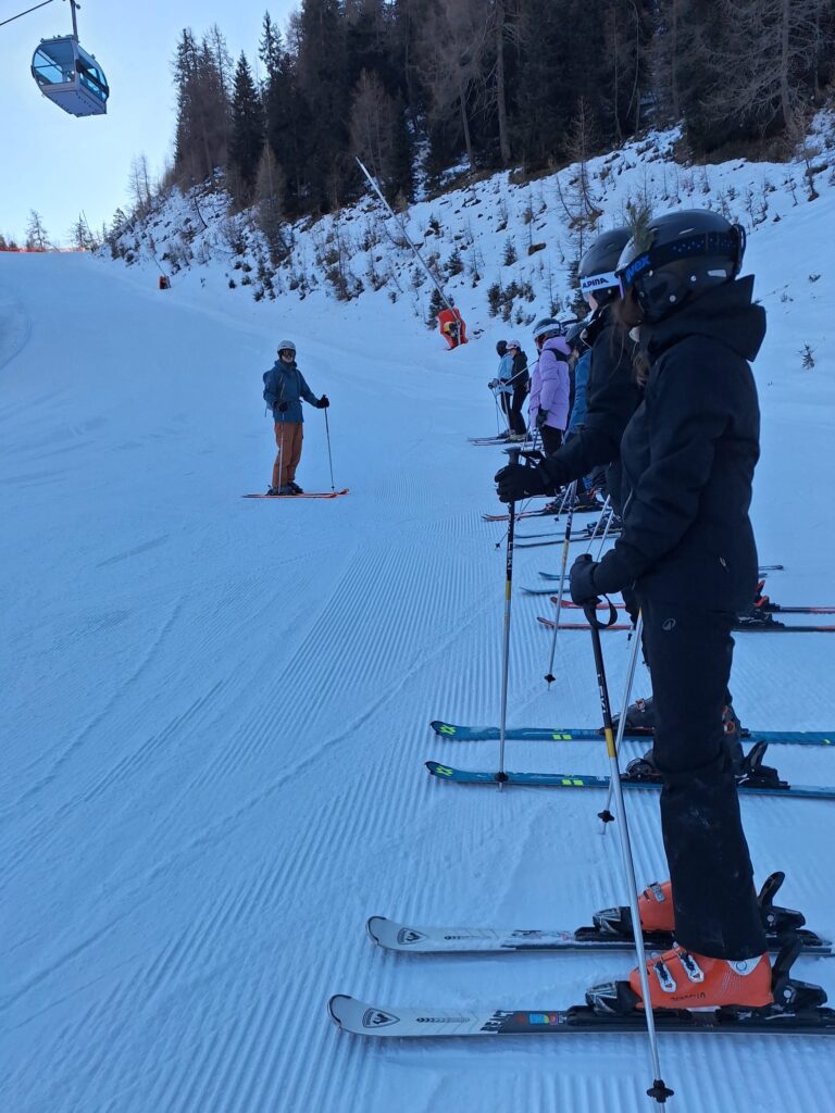 Tag 4 und damit unser letzter Tag im Skilager ist nun leider auch vorbei. Die Pistenzeit startete in den bekannten Skigruppen, jedoch diesmal für alle direkt im oberen Bereich des Skigebietes. Anschließend hatten alle Schüler:innen die Chance sich in gemischten Gruppen aus Anfängern und Fortgeschrittenen auf festgelegten Pisten gegenseitig Tipps und Tricks weiterzugeben, um noch besser zu werden und gemeinsam Zeit auf der Piste verbringen zu können. Nach einem letzten Abendbrot rollen um 17:30 die Busse ab und es heißt: „Tschüss Südtirol, Tschüss Natz, Tschüss Skilager!“