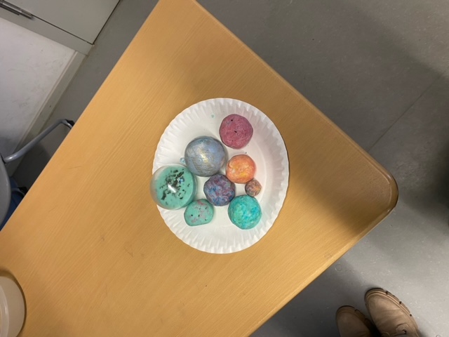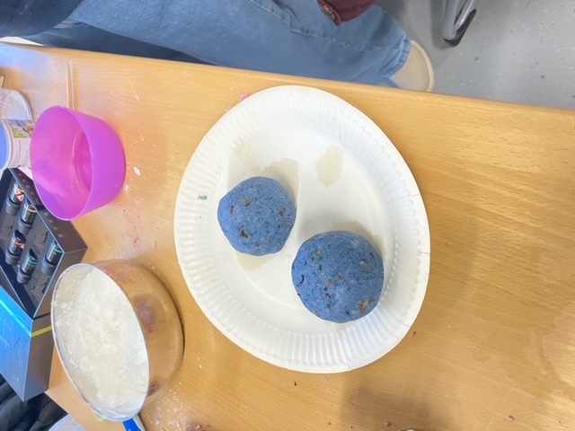 Wir haben uns alle gemeinsam entschieden, an dem ersten Tag unsere eigenen Badebomben herzustellen. Dabei konnte jeder seine Badebomben mit eigenen Gerüchen und Farben personalisieren.