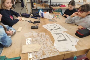 Holzwerkstatt, das triffst fast nicht, Manufaktur schon eher, denn es entstehen Gegenstände aus unterschiedlichen Handwerken: hauptsächlich produzieren wir Frühstücksbrettchen durch Brandmalerei, aber auch Untersetzer (mit der Strickliesl),Perlentiere und gehäkelte Miniaturen…. Lasst euch überraschen…